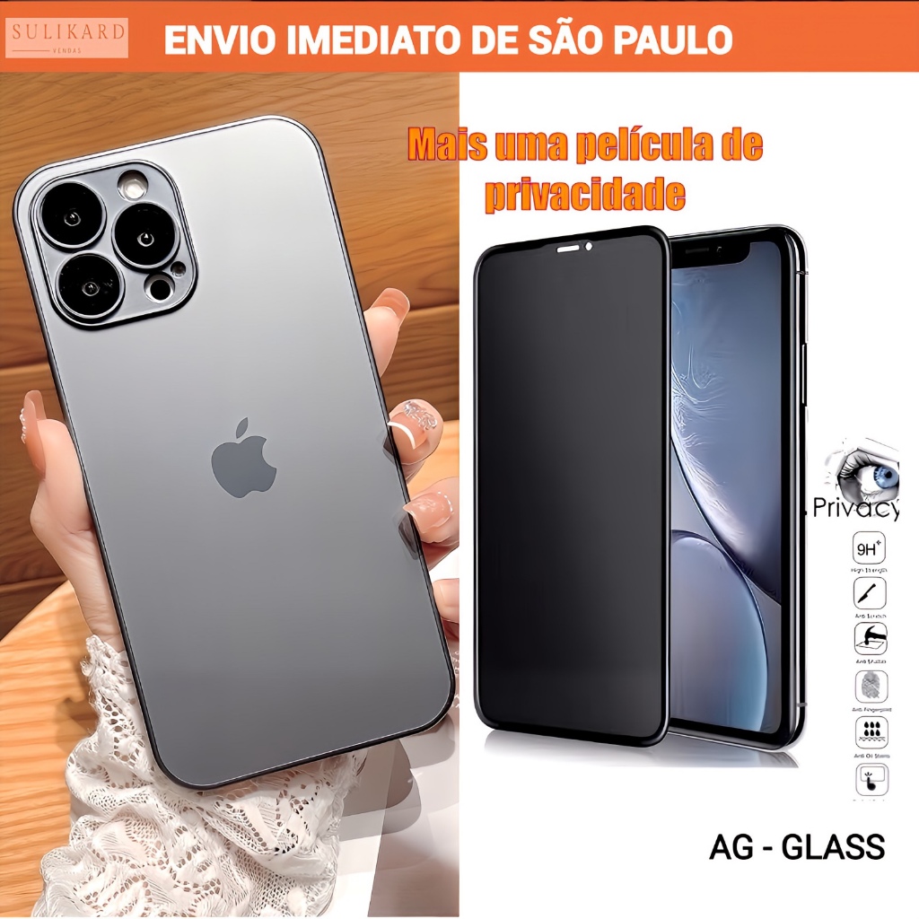 CASE I GLASS - AG - Capinha Capa De Vidro Fosco Temperado AG Para iPhone 11 Pro Max 12 Pro Max 13 Pro Max 14 Pro Max 15 Pro Max ProMax Mais Resistente De Alta Qualidade Com Borda Galvanoplástica Proteção de Câmera Nano