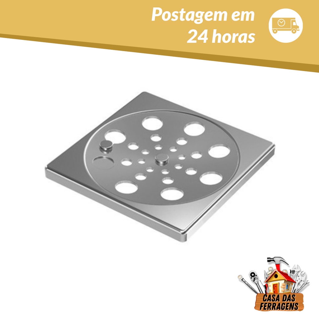 ralo de banheiro grelha tampa Inox quadrado abre e fecha 10x10 cm não acompanha o porta grelha