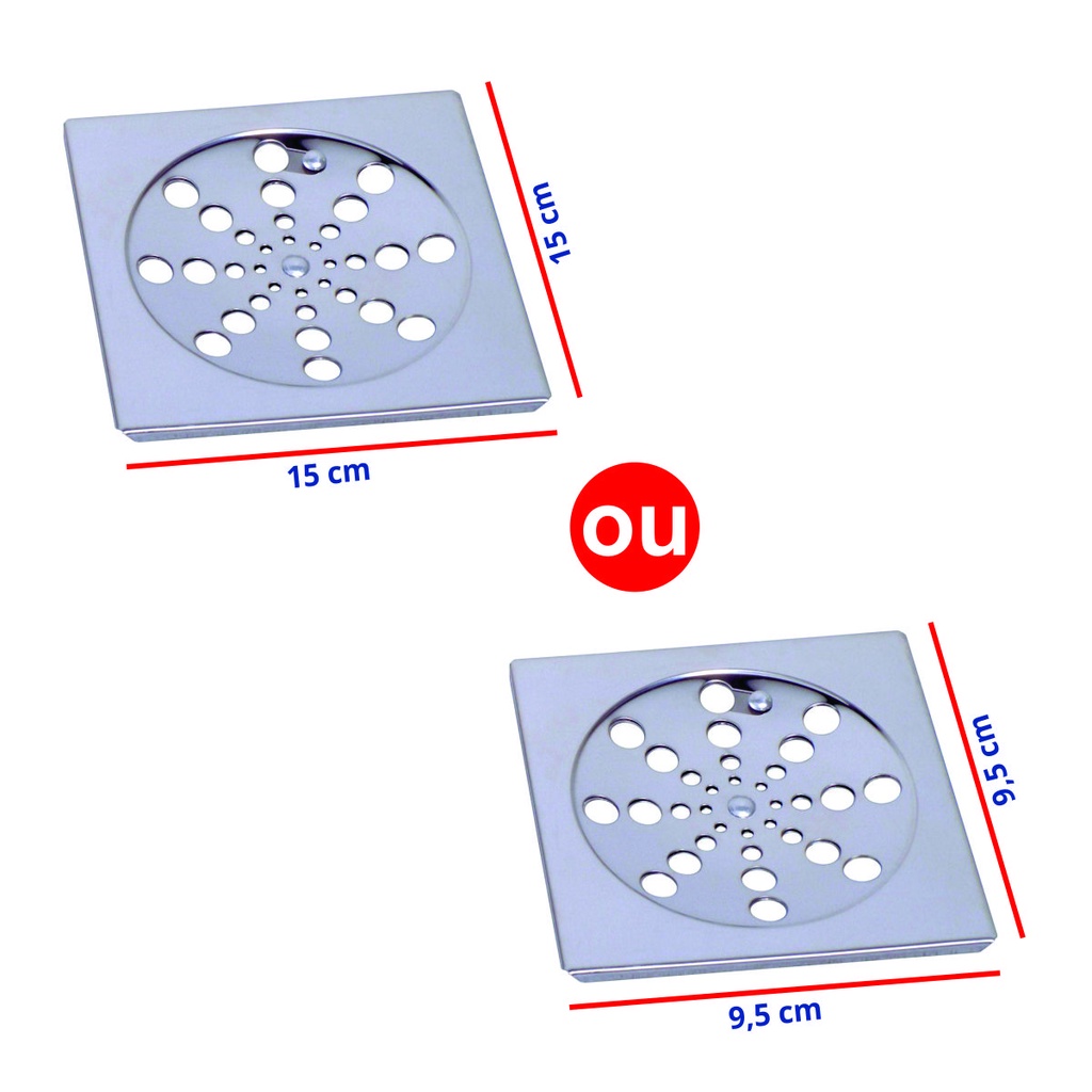 Ralo Quadrado Abre e Fecha + Porta Grelha Para Banheiro Aço Inox 15x15