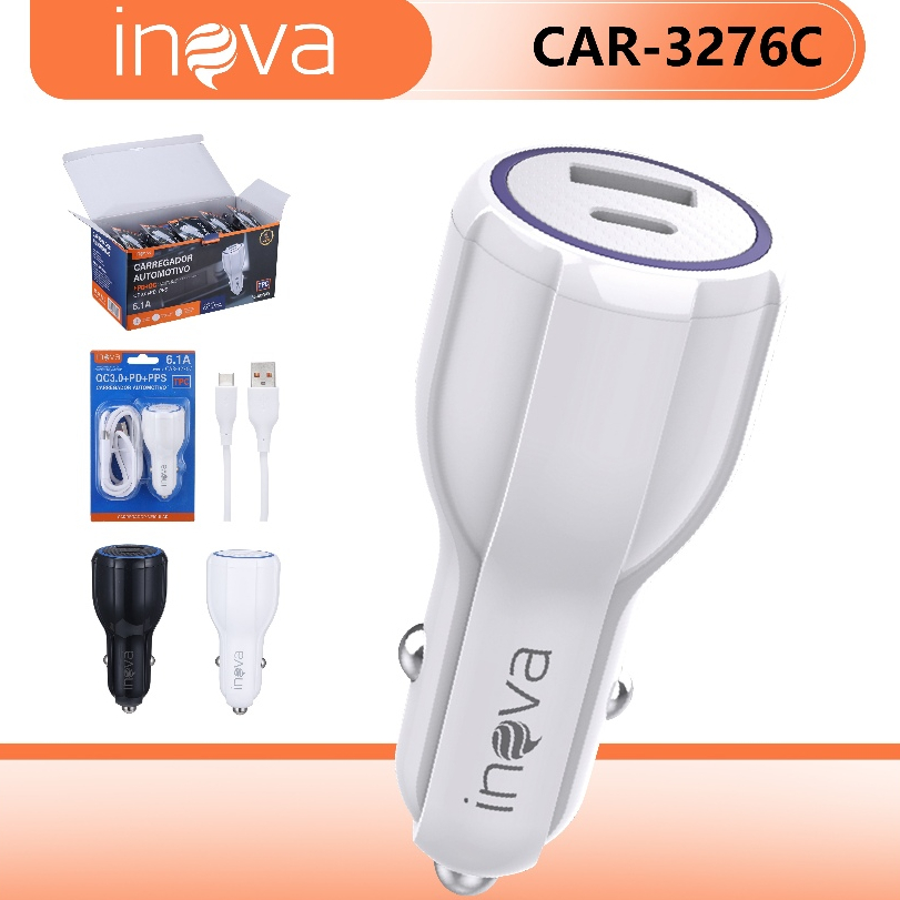 Carregador Inova para Celular Veicular Carro Fonte 2 entradas USB Turbo Rápido