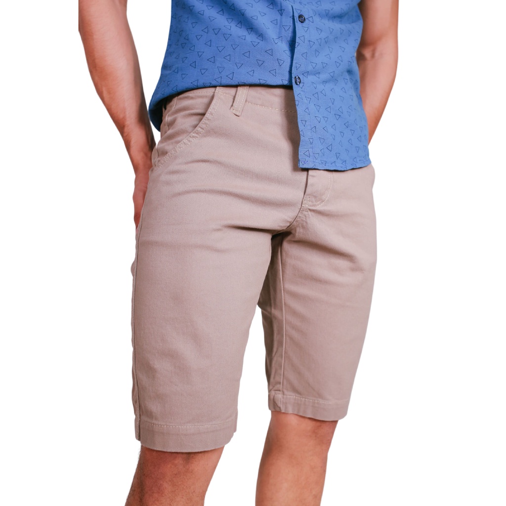 Bermuda Masculina Caqui de Brim Slim Bolso Embutido