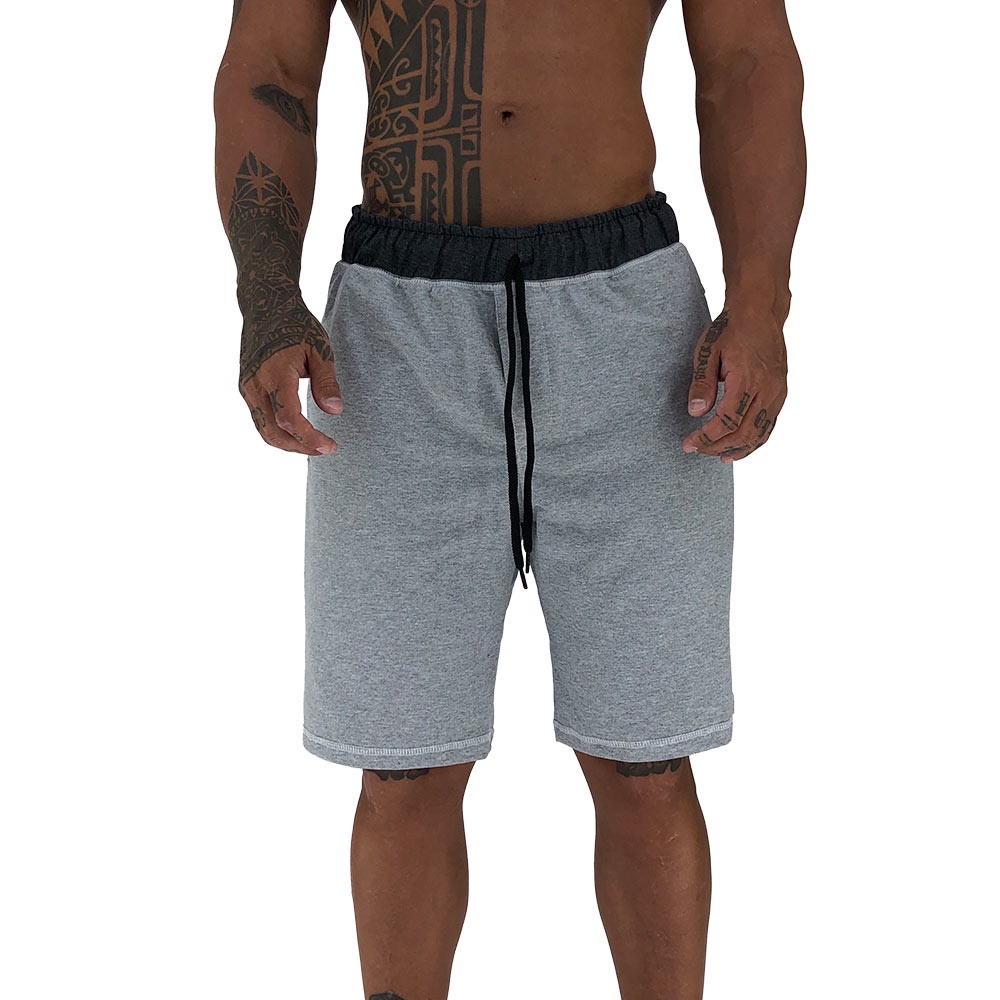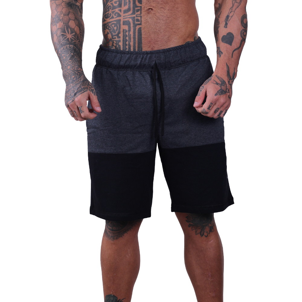 Bermuda Masculina Moletom MXD Conceito Grafite e Preto Academias Esportivas Casuais Bolso Lateral Varejo/Atacado Sem Pelucia