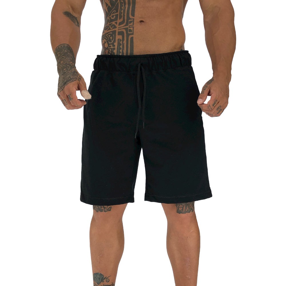 Bermuda Masculina Moletinho MXD Conceito Preta Academias Esportivas Casuais Bolso Lateral Varejo/Atacado Sem Pelucia