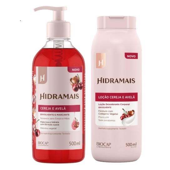 Kit Cereja e Avelã - Sabonete Líquido 500ml e Loção Hidratante 500ml (Lançamento) - Hidramais