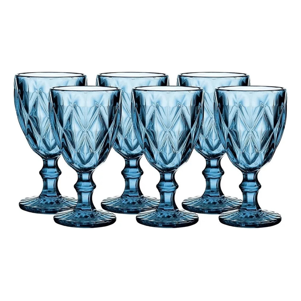 Jogo 6 Taças Modelo Diamante Em Vidro Azul 340ml Original Line 7634