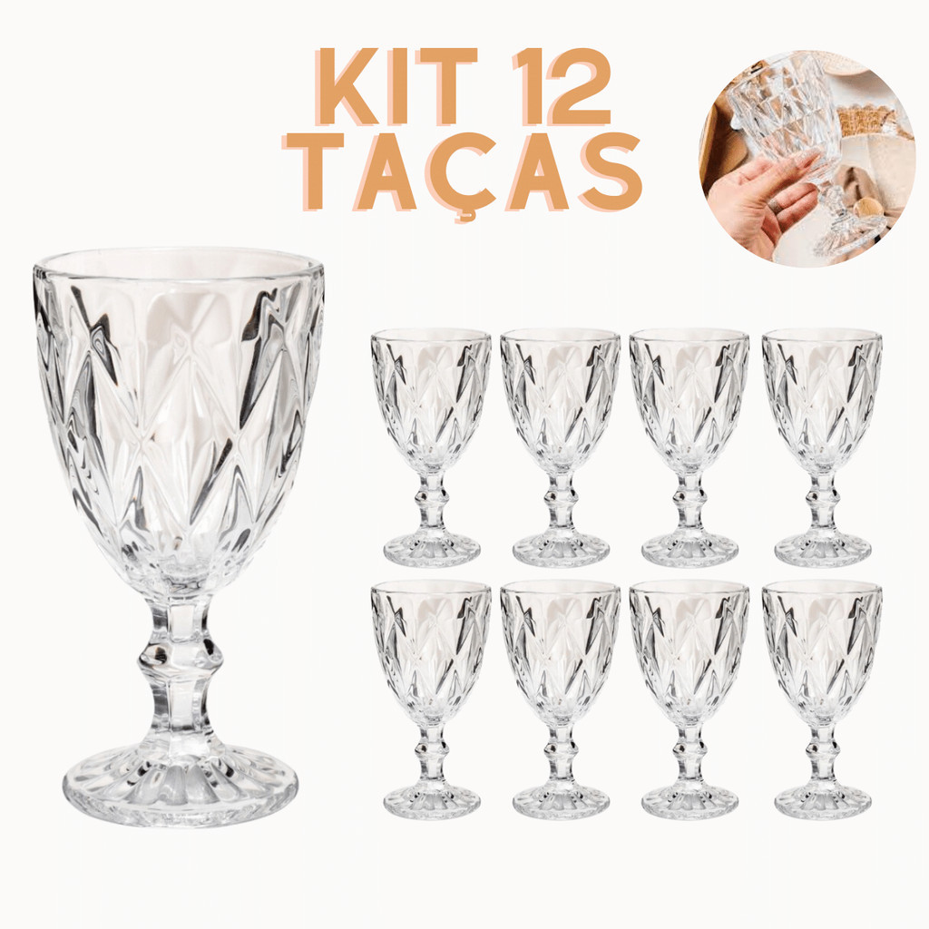 Jogo 12 Taças Diamante Copo Vidro Transparente Diamond 6 ou 12 unidades