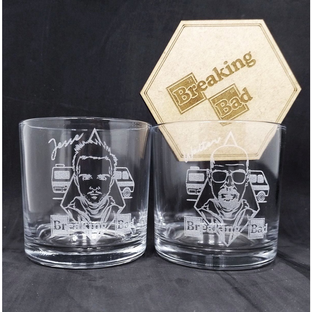 Jogo De Copos Breaking Bad Whisky Com Base Madeira 2un.