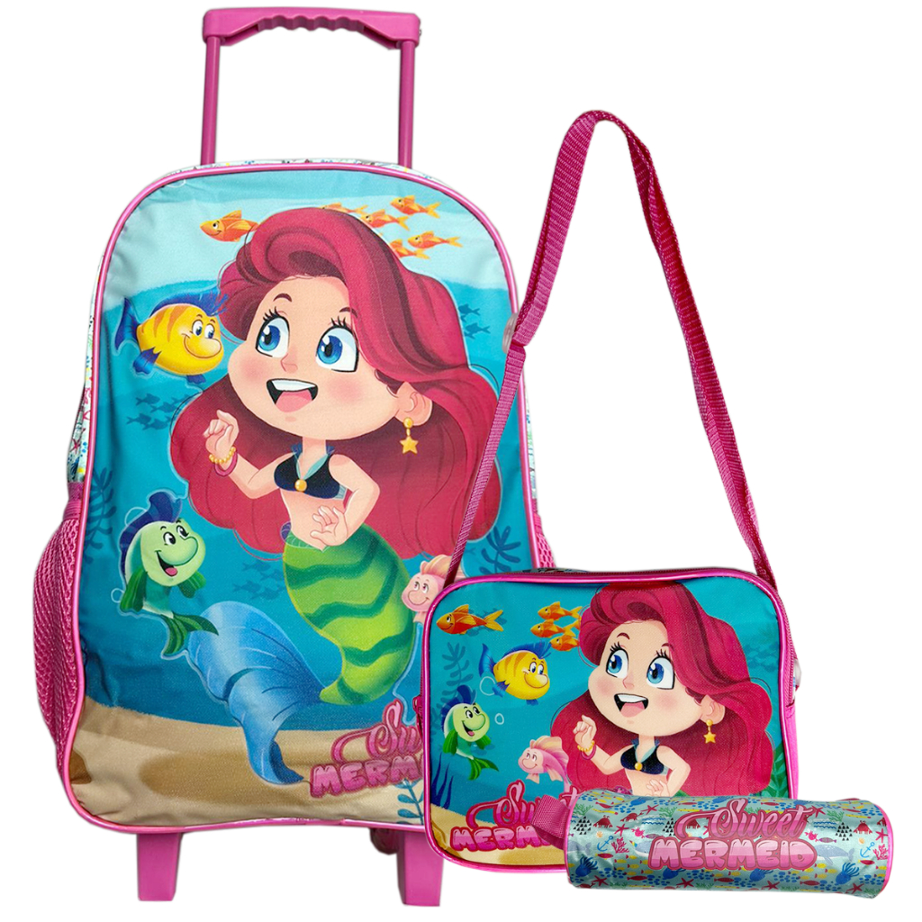 Kit Mochila Escolar Infantil de Rodinhas Menina Bolsa Resistente Impermeável Com Lancheira e Estojo