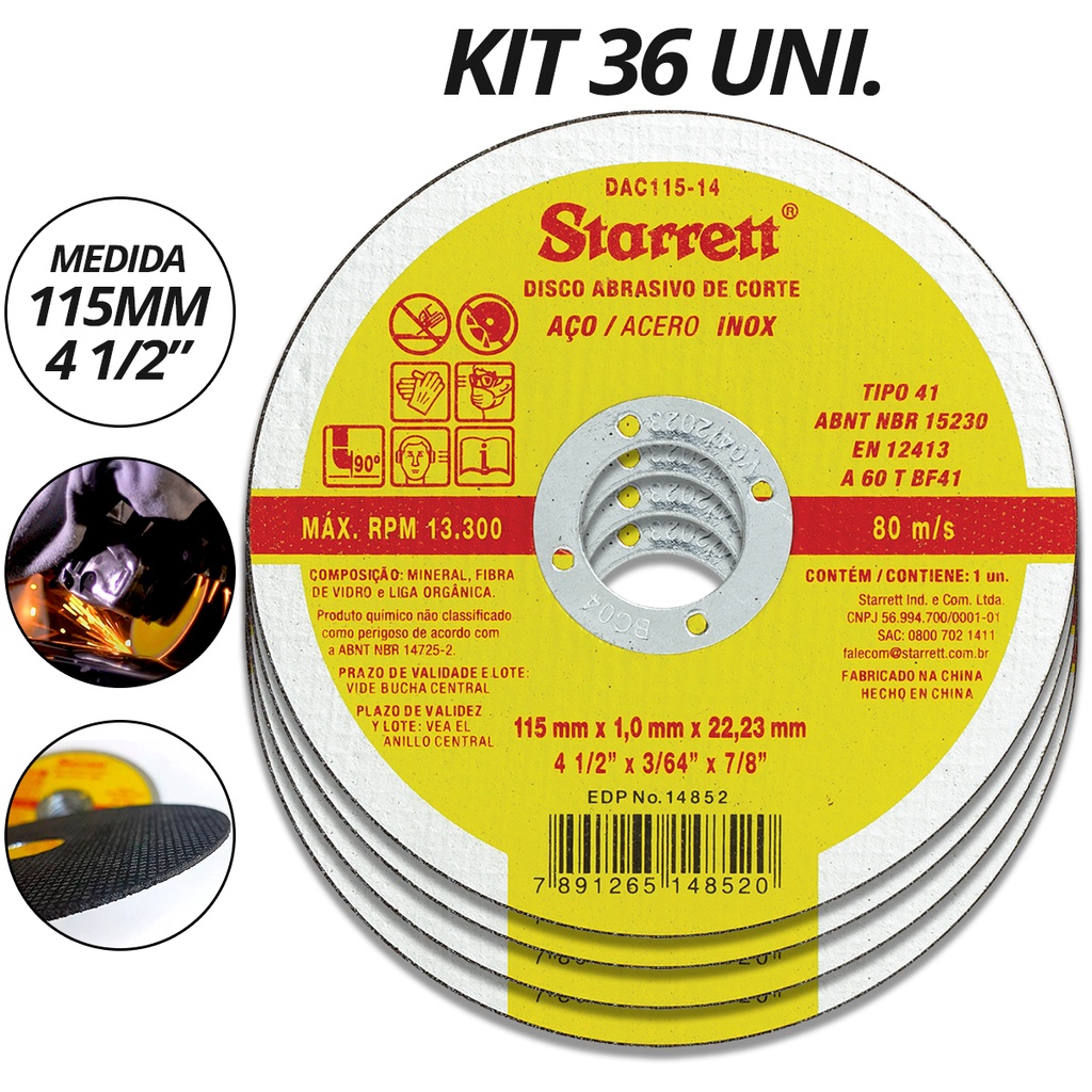 Kit 36 Disco De Corte Fino Inox 4.1/2" Espessura 1,0 mm Starrett