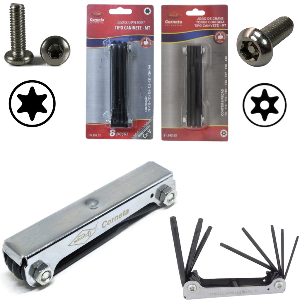 Jogo de Chave Profissional Tipo Canivete de Metal Torx T9 A T40 opção COM e SEM Furo Guia