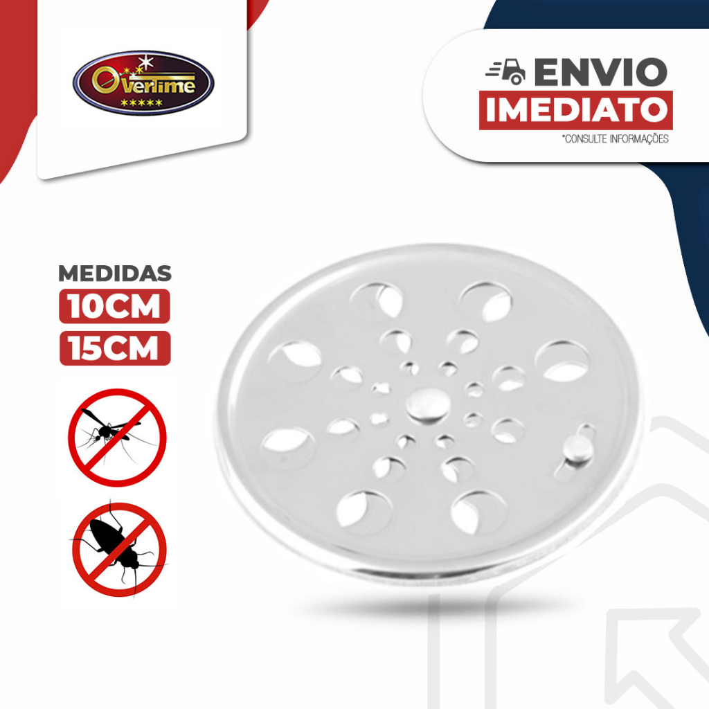 Ralo Tampa Grelha Abre e Fecha de Aço Inox para Porta Grelha de 10x10 ou 15x15 Redonda com Fecho | Overtime