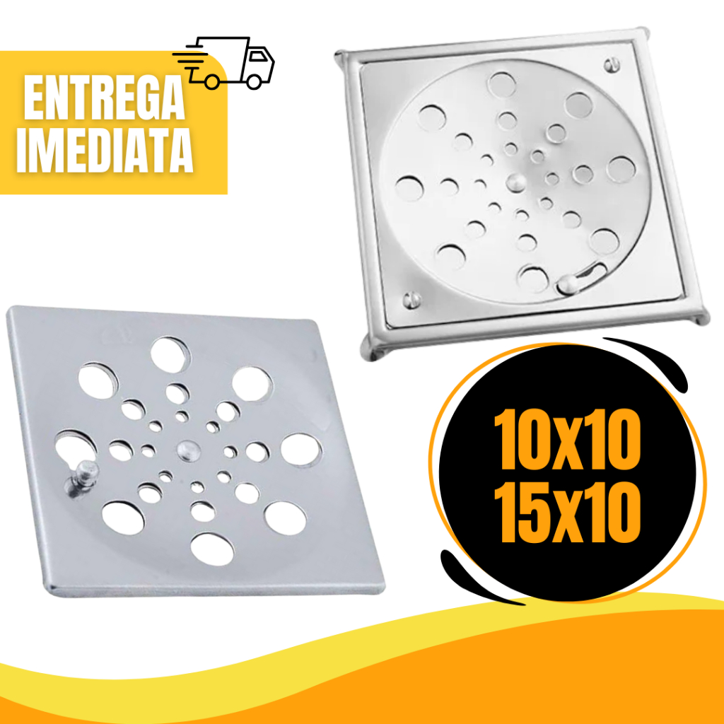 Ralo Quadrado Abre e Fecha + Porta Grelha Para Banheiro Aço Inox 15x15