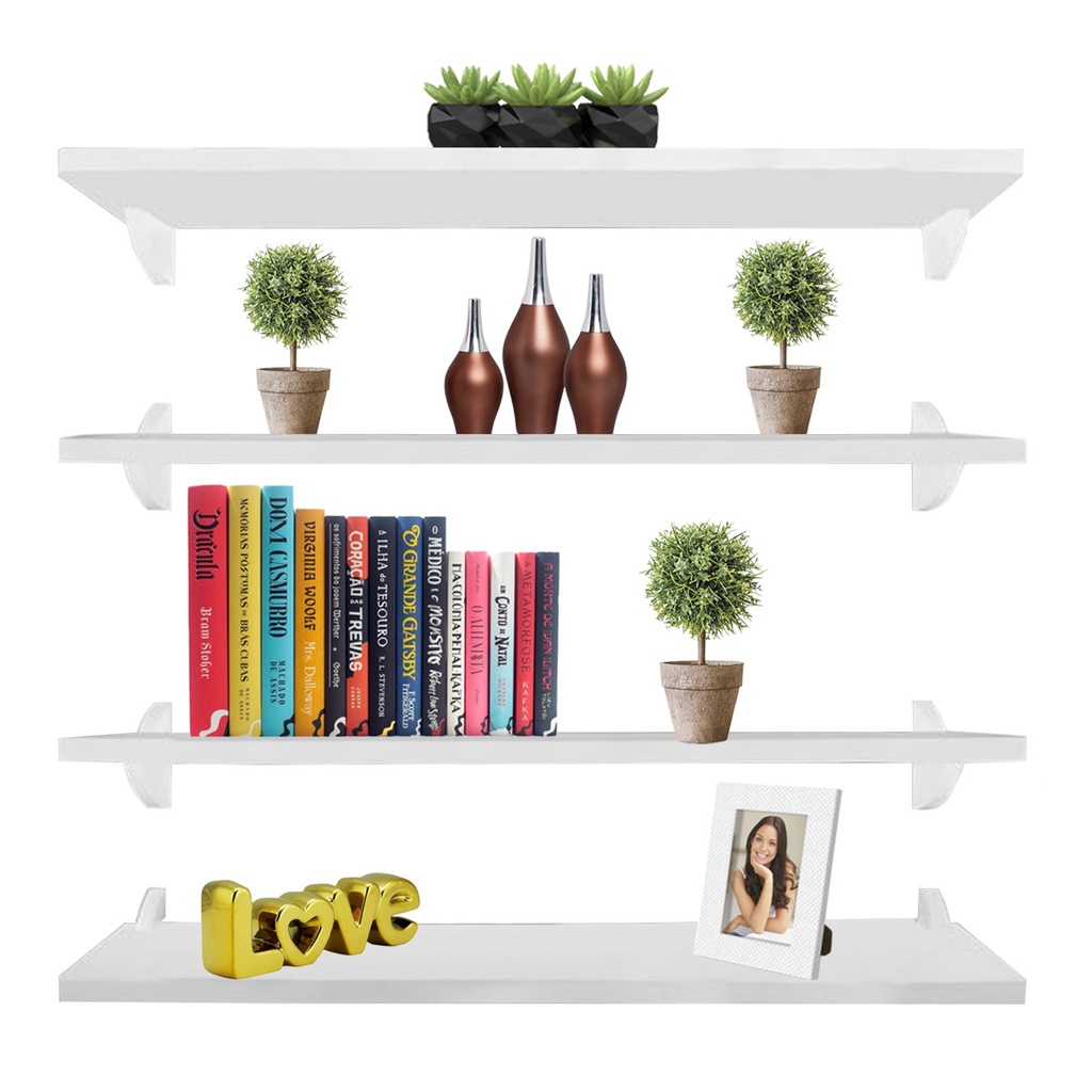 4 Prateleiras 45x10 Com Suporte Mdf Branco Organização Para Cozinha Banheiro Quarto Dormitorio Sala Lavabo Area Gourmet Escritorio Casa Lavanderia Kit Jogo Parede Decorativa Tabua 45cm Madeira Invisível Flutuante 45 Cm x 10 Cm Branca