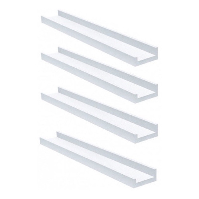 Kit 4 Prateleiras para Porta Quadros 80 cm MDF Branco Fosco com Kit de Instalação Organização Decoração Casa Sala Quarto Infantil Cozinha