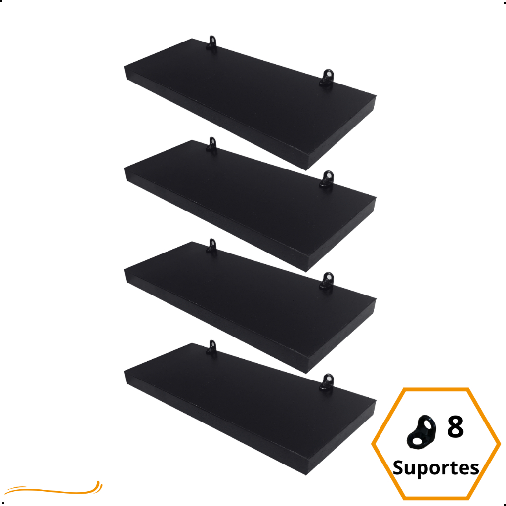 4 PrateleiraS 25x10 Com Suporte Mdf Preto Organização Para Cozinha Banheiro Quarto Dormitorio Sala Lavabo Area Gourmet Escritorio Casa Lavanderia Parede Decorativa Tabua 25cm Madeira Flutuante 25 Cm x 10 Cm Preta