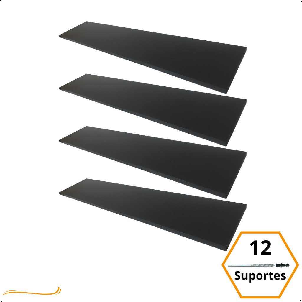4 Prateleiras 100x20 Com Suporte Invisível Flutuante Mdf Preto Organização Para Cozinha Banheiro Quarto Dormitorio Sala Lavabo Area Gourmet Escritorio Casa Lavanderia Parede Decorativa Tabua 100cm Madeira Flutuante 100 Cm x 20 Cm Preta