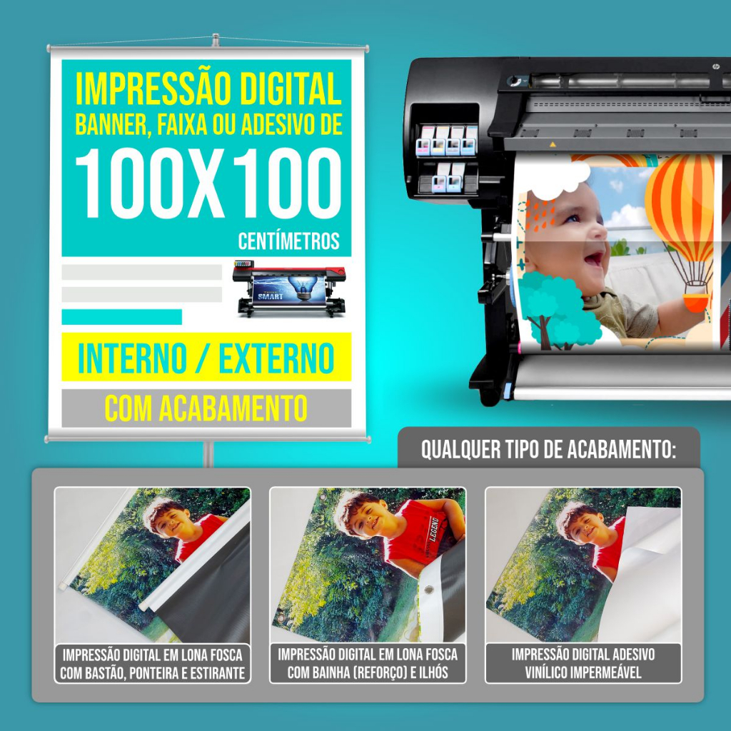 Faixa ou Banner 100 x 100 cm c/ Impressão Digital Alta Resolução em Lona Fosca Anti-Reflexo Acabamento Reforçado