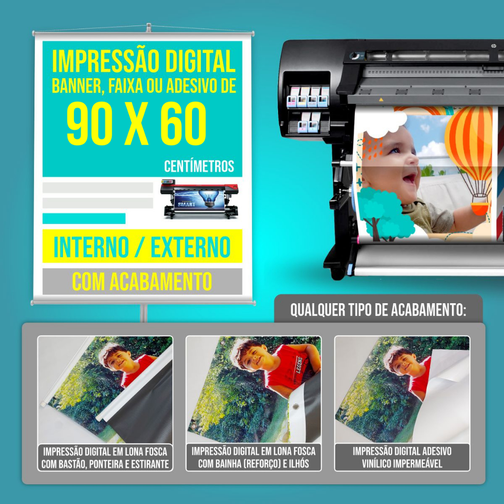 Faixa ou Banner 60 x 90 cm c/ Impressão Digital Alta Resolução em Lona Fosca Anti-Reflexo Acabamento Reforçado