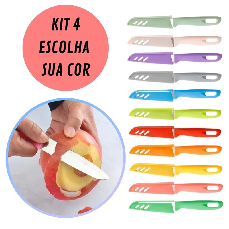 Kit 4 Facas escolha sua cor Aço Inox Afiada com Bainha Capa Protetora Cozinha Pesca Camping Faquinha Colorida faca