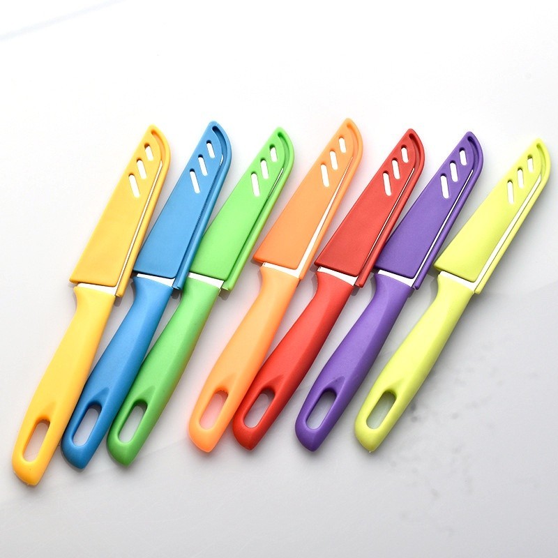 Kit 20 Facas Cozinha Afiada Lâmina Aço Inox Faquinha Colorida Com Capa Protetora