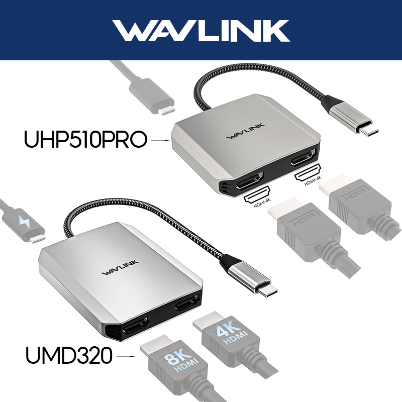 WAVLINK 1 IN 2 Adaptador HDMI De Saída USB C Para Conversor Duplo DisplayLink 5K @ 60Hz Hub M1/M2/M3