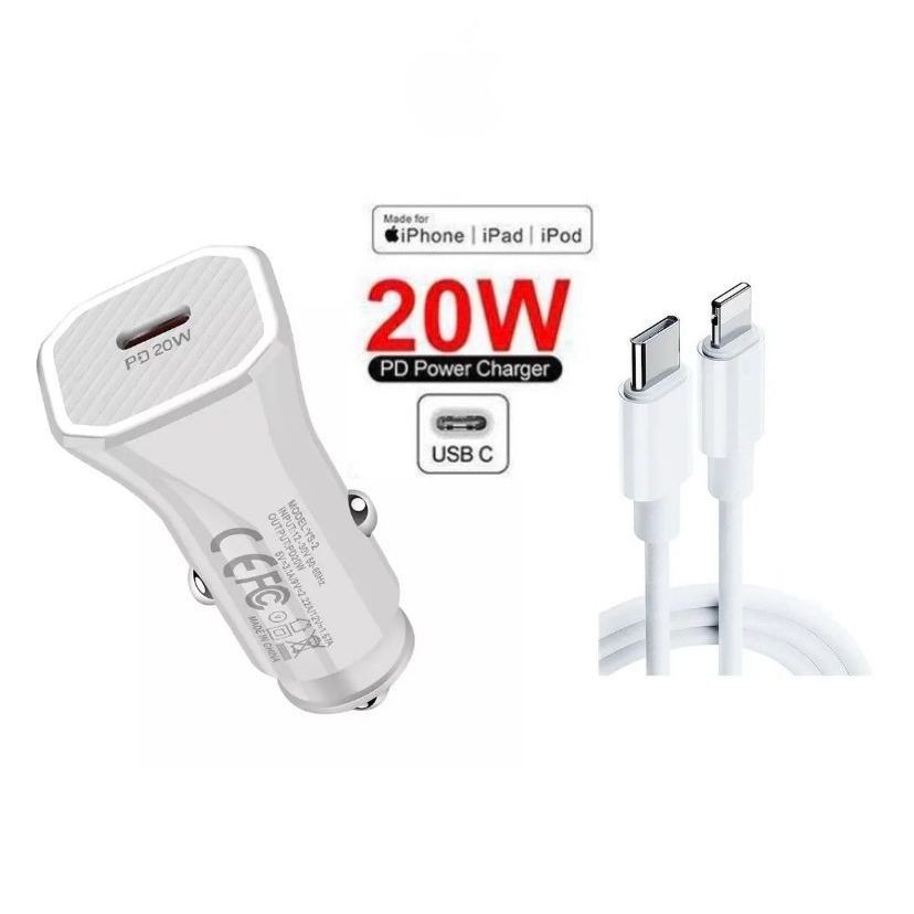 Carregador Veicular de iPhone Turbo 20w Carregador de carro PD Tipo C Turbo X Lightning para iPhones