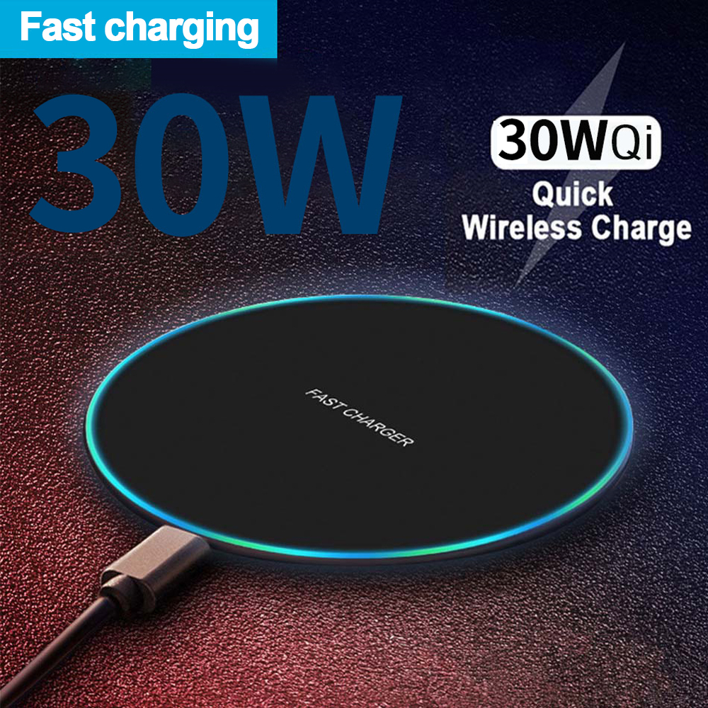 Carregador Adaptador Sem Fio Qi 30W Redondo de Carga Rápida Para Iphone Samsung