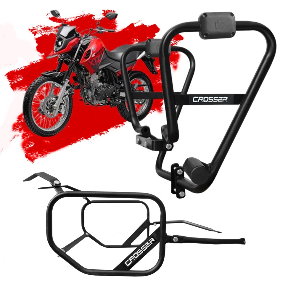 Kit Para CROSSER 150 XTZ de 2014 até 2024 Protetor Carenagem Tanque Motor Mata Cachorro + Afastador Alforges Traseiro Lateral