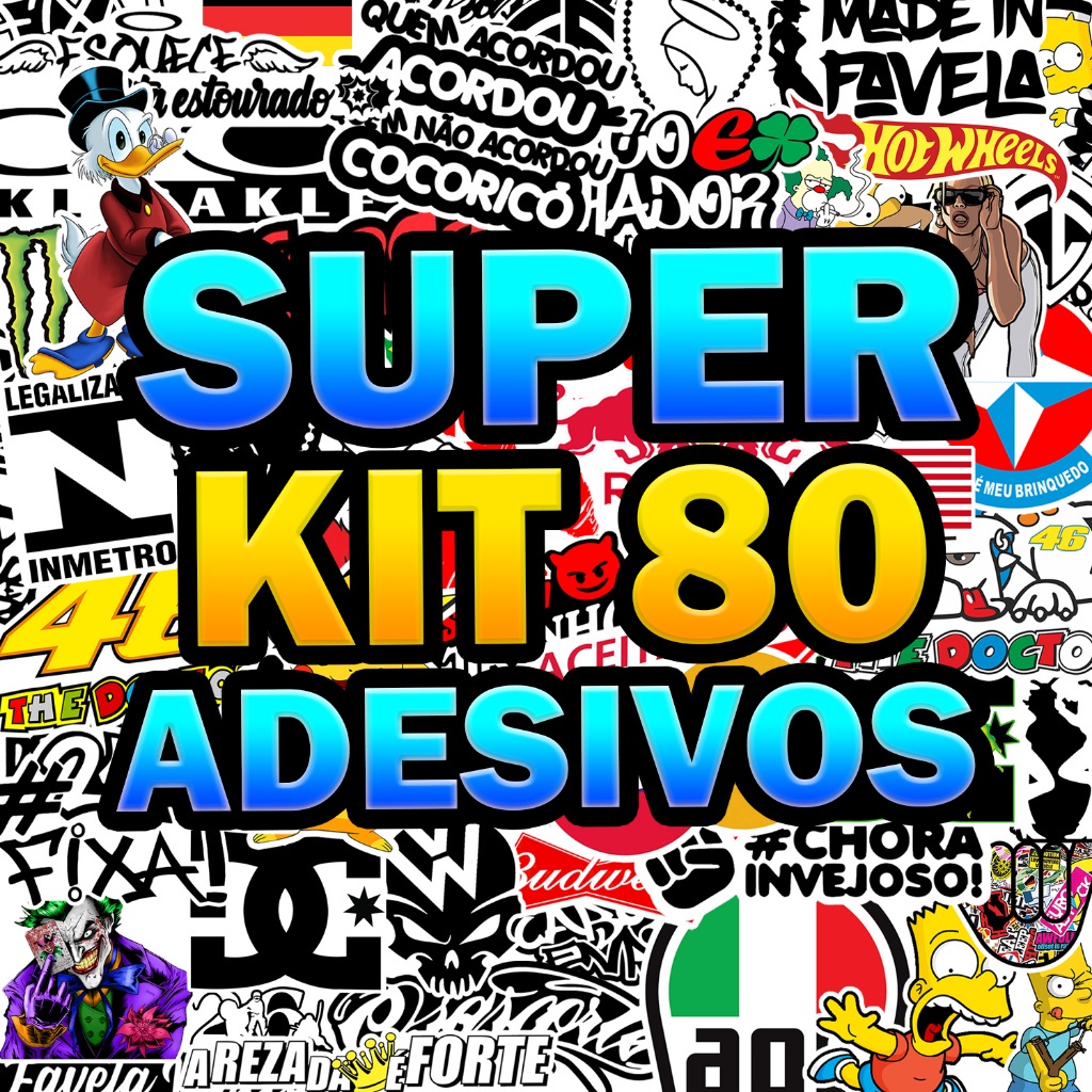 Kit 80 Adesivos Carro Moto Caminhão Bike Variados 6 Cartelas