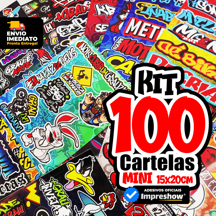 Combo 100 MINI Cartelas de Adesivos Carro Moto Caminhão Bike Atacado Kit