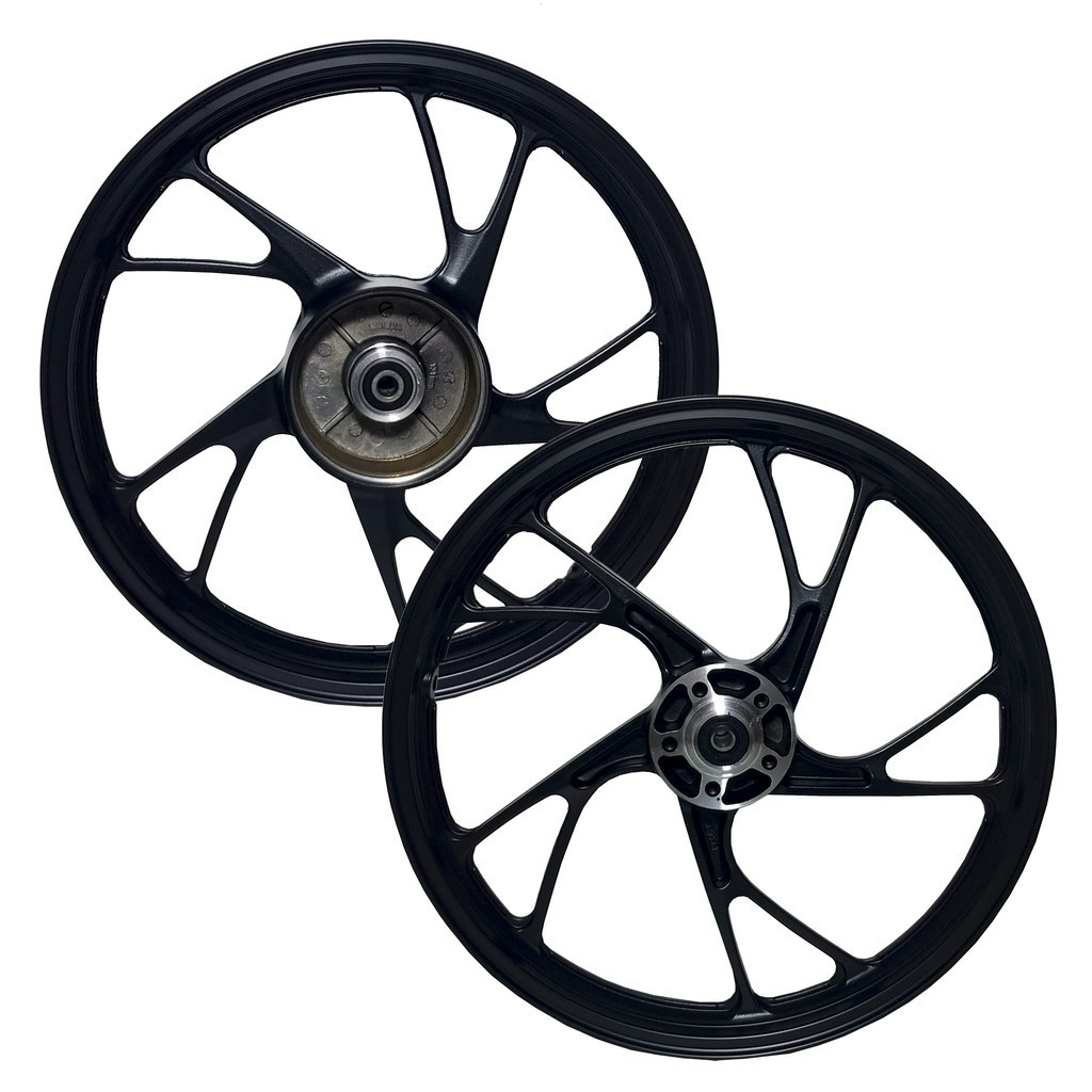 Jogo de Roda Liga Leve Fan 125 Fan 2009 a 2015 Freio a Tambor Pé de Galinha Preta Fabreck