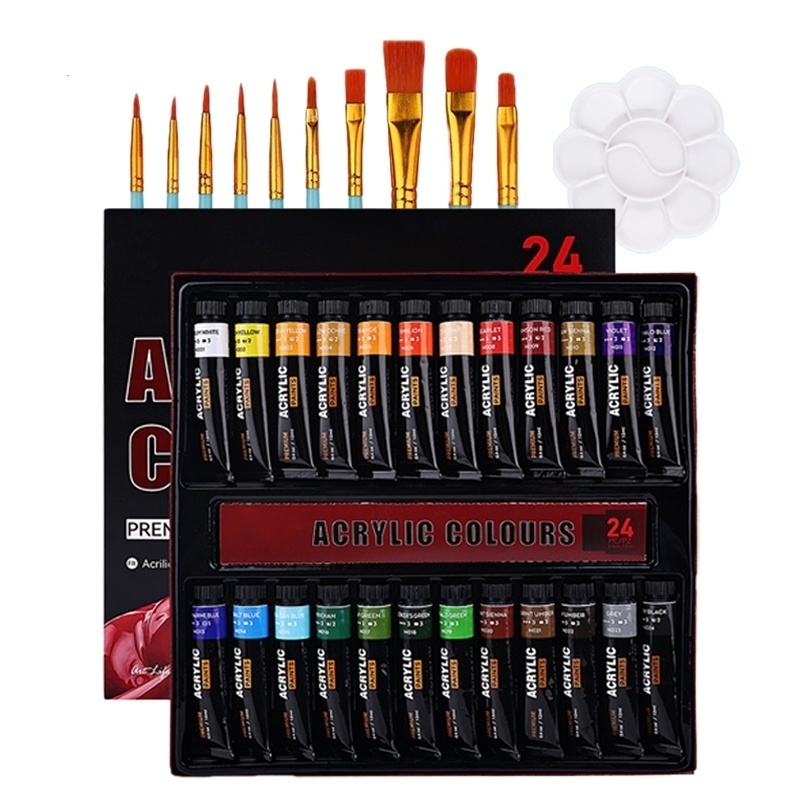 12/24 Cores Tinta Acrílica Com Pincel E Paleta Para Artesanato/Parede Kit Desenho Profissional