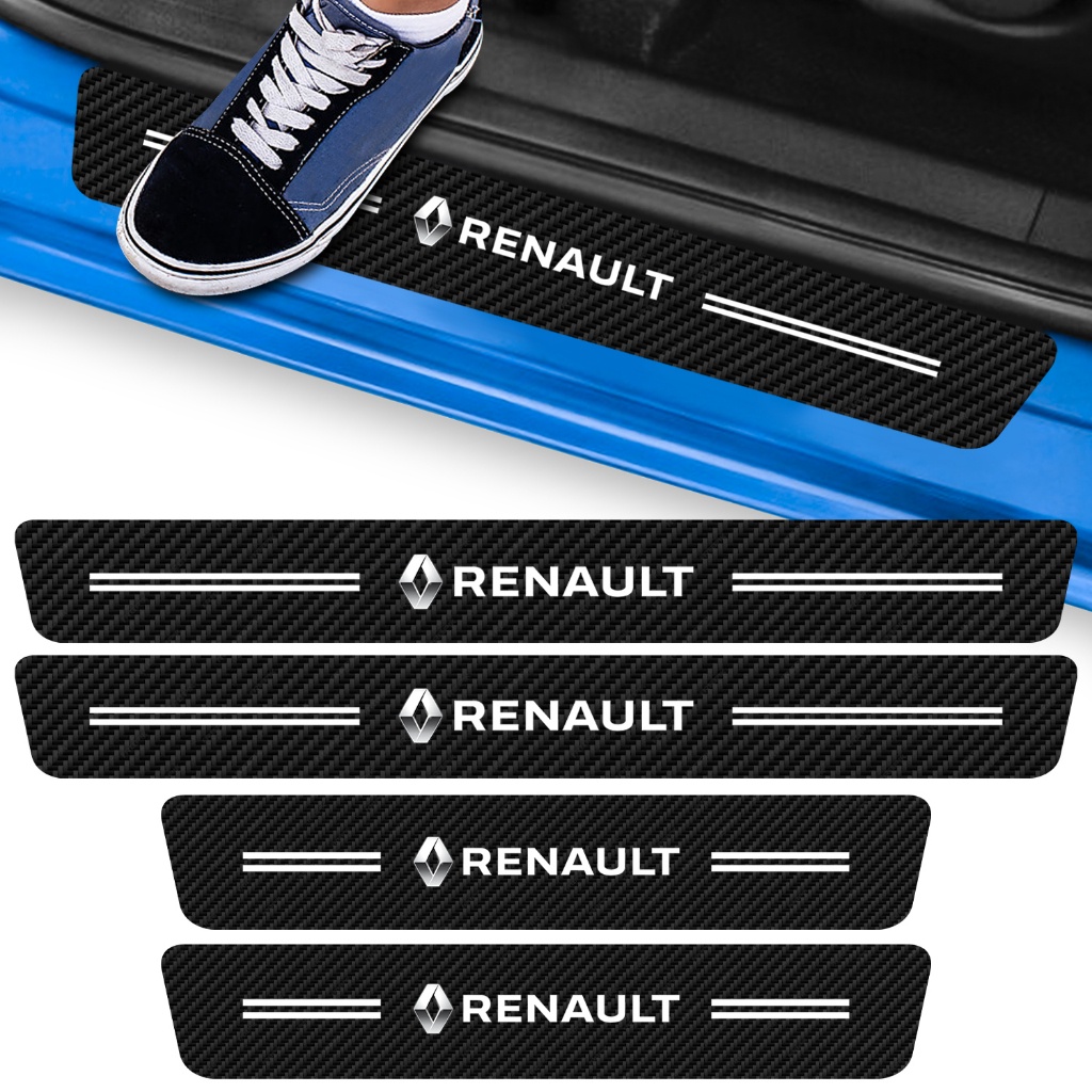 Kit 4 Peças Adesivo Soleira de Porta Carro Modelo Renault Proteção Fibra de Carbono Anti Arranhões