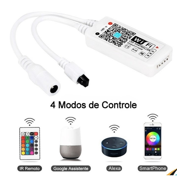 Controlador RGB Wifi App Celular Android IOS Fita Led Colorida Com Controle Google Alexa Magic Home