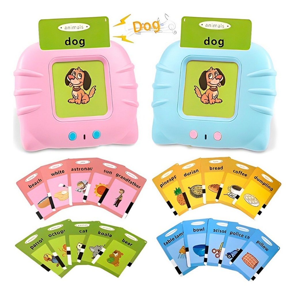 Card Kids 224 Palavras - 112 CARDS Aprenda a falar inglês brincando leitor de cartas sons Nome de Coisas Animais Comidas Children's preschool Azul Rosa