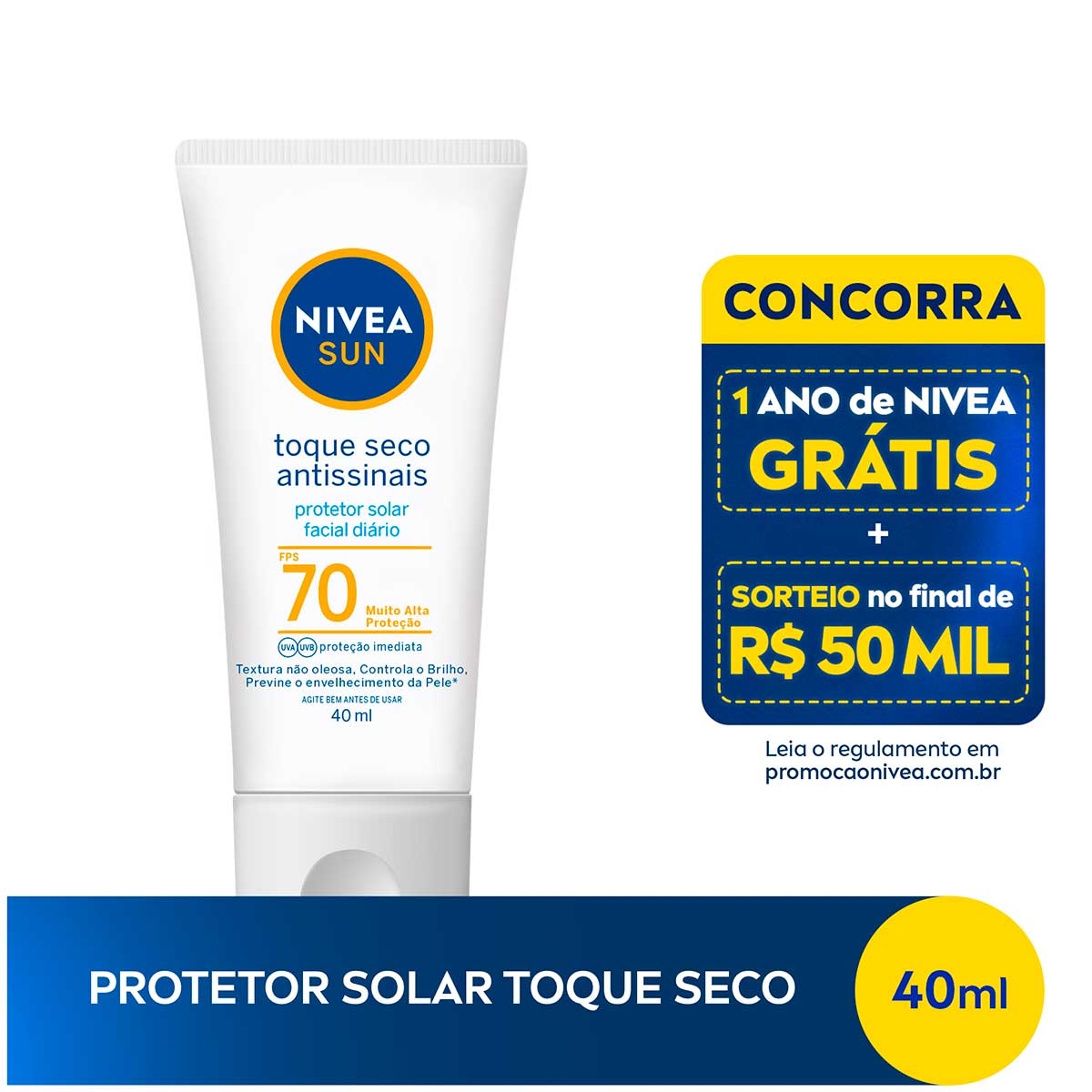 Protetor Solar Facial Nivea Sun Toque Seco Antissinais FPS 70 40ml
