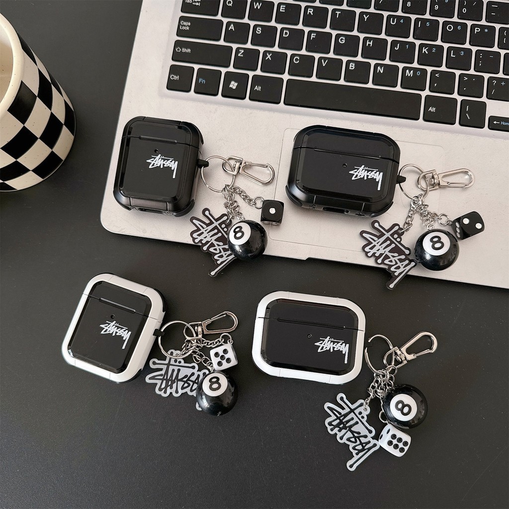 Preto Branco Bola 8 Dados Com Chave De Bilhar Stussy AirPods Case Capa De Fone De Ouvido Compatível 4 1/2 3a Geração pro