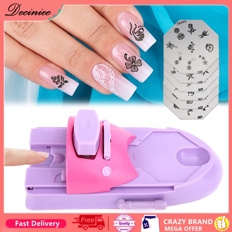Máquina De Impressão Manual De Arte De Unhas Com 6pcs Placas De Estampagem De Metal Manicure Cor Desenho Ferramenta
