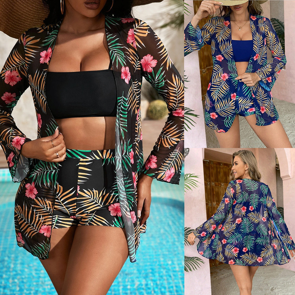 Fato De Banho Com Protetor Solar boxer Feminino split shorts De Aço Suporte Leopardo Impressão Biquíni