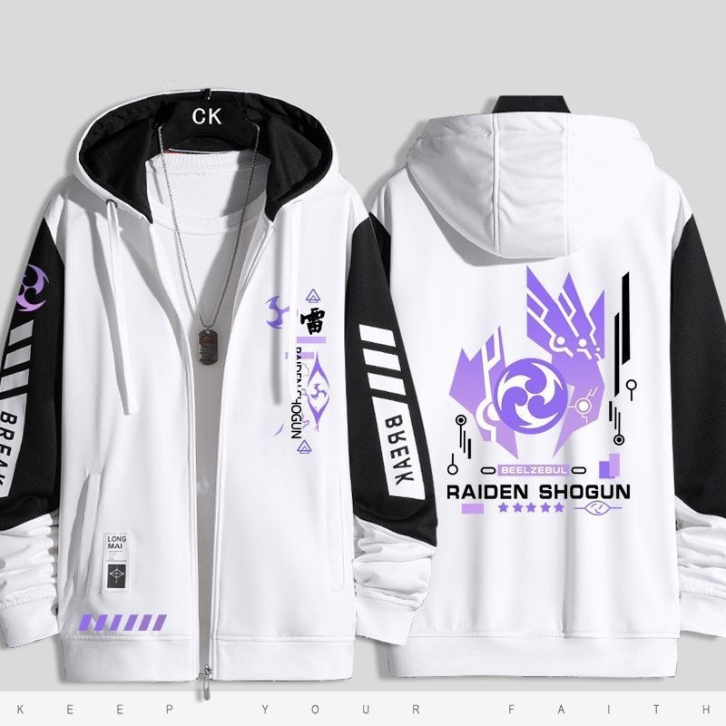 Jogo De Anime Genshin Impacto Cos Beelzebul Casual Impressão Regular Casaco Solto Com Capuz De Mola Zíper