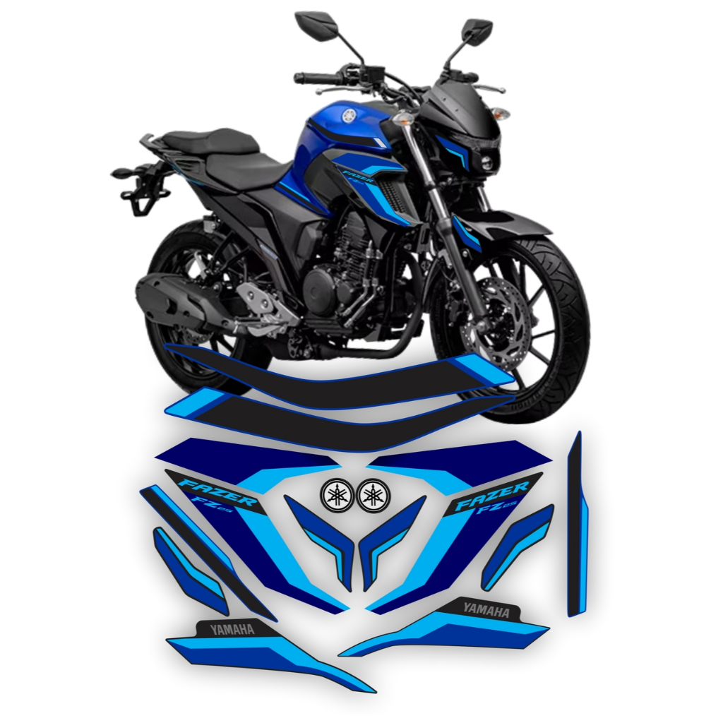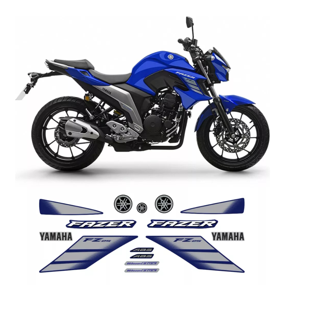 Kit Faixas Adesivos Yamaha Fz25 2024 Abs Moto Azul Laminado Serve na 2016 a 2024