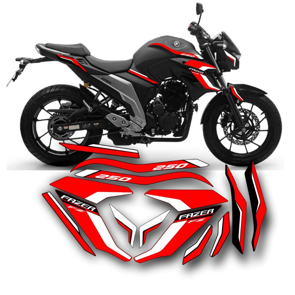 Kit Adesivos Faixas Moto Yamaha FZ25 Fazer 250 ABS 2022 Preta Jogo Adesivo