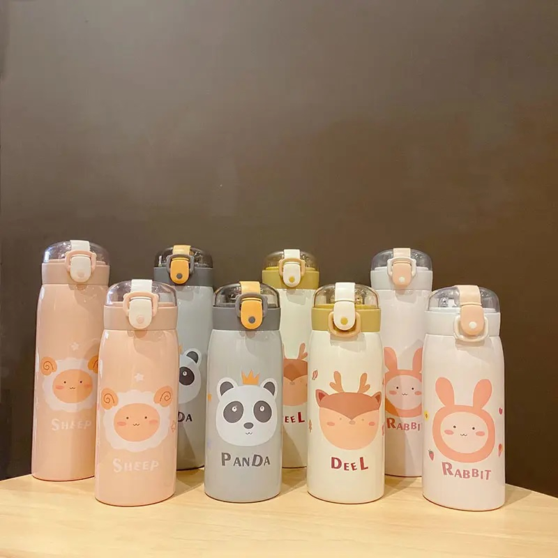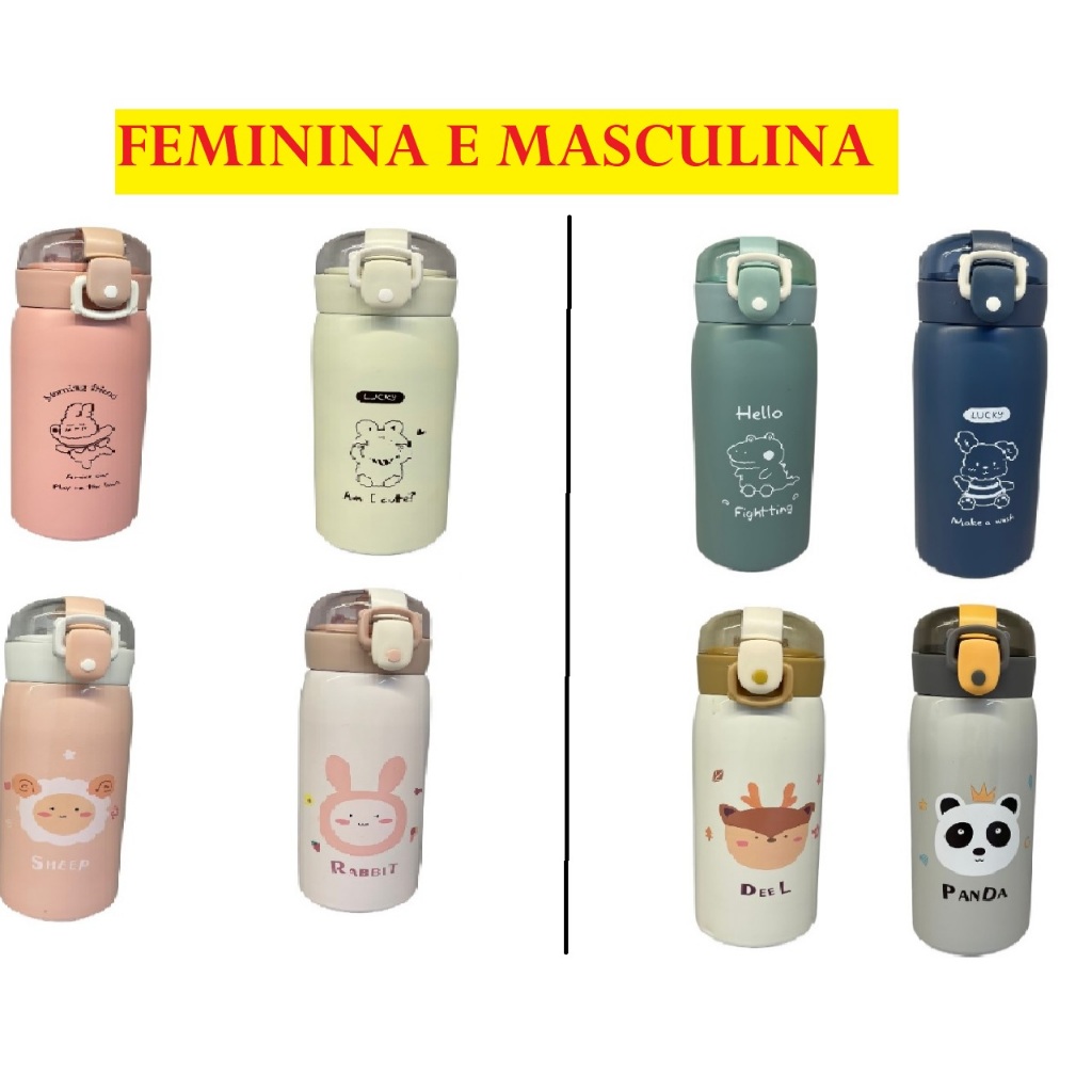 Garrafa Térmica Infantil Com Canudo Aço Inox 350ml Animais