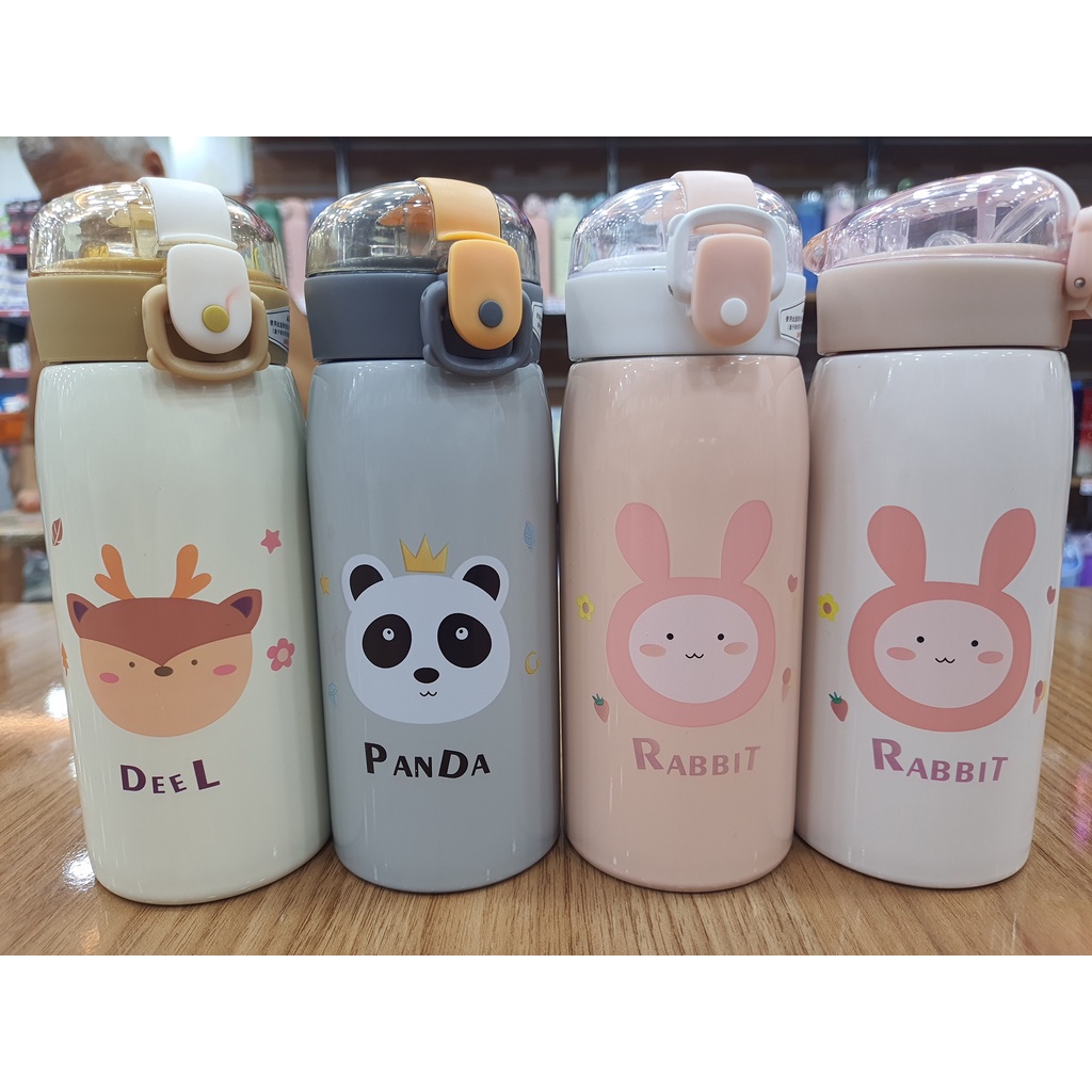 Garrafa Squeeze Termica Panda Animais Fofos Inox infantil e adulto Bico Silicone 350ml com Canudo+alca