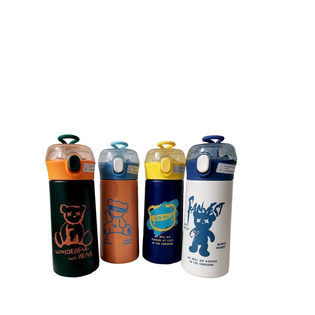 350ML Garrafa Térmica Infantil Aço Inox Com Canudo e Desenho animado Inquebrável