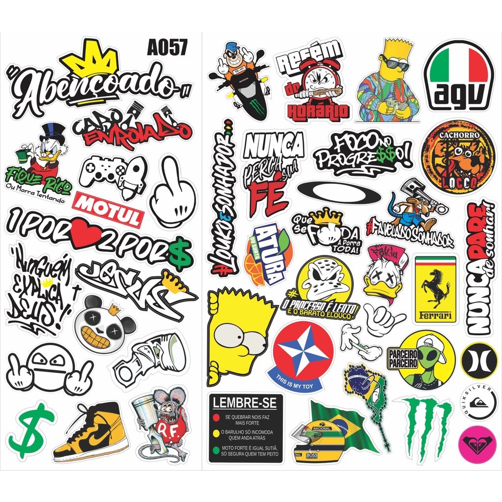 Cartela de Adesivos Para Bike Carro Moto Kit Com 50 Unidades