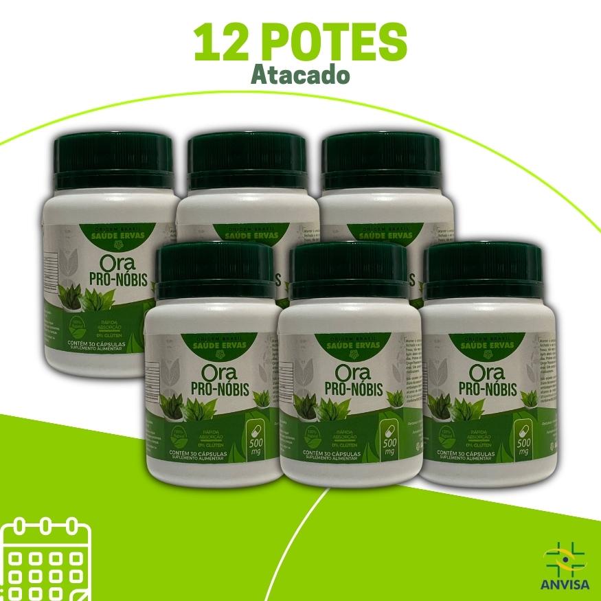 Kit 12 Potes Ora Pro Nóbis 500mg Em Cápsulas Original Natural - Revenda