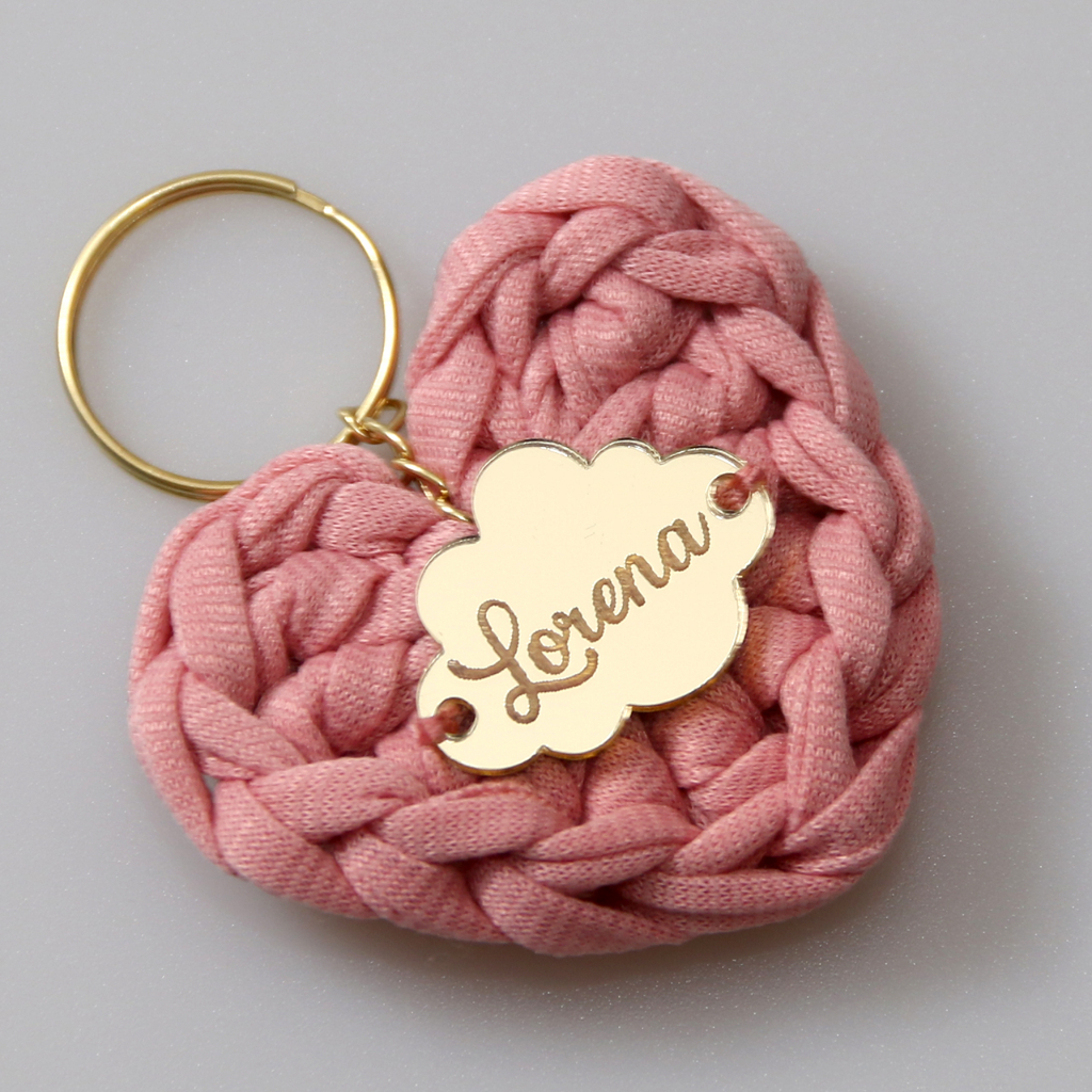 Kit 50 chaveiros fio de malha coração com nome personalizado lembrancinha