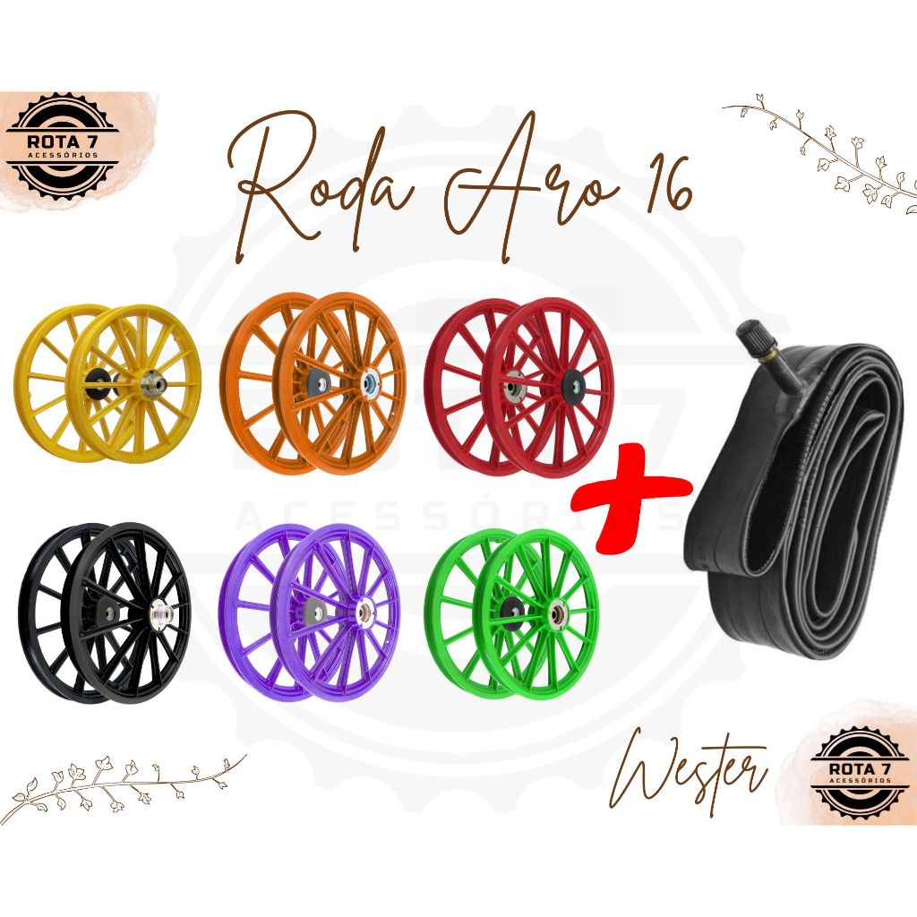 Kit Roda Nylon Plástico Aro 16 + Câmara de Ar Bicicleta Infantil MTB Bike - Wester