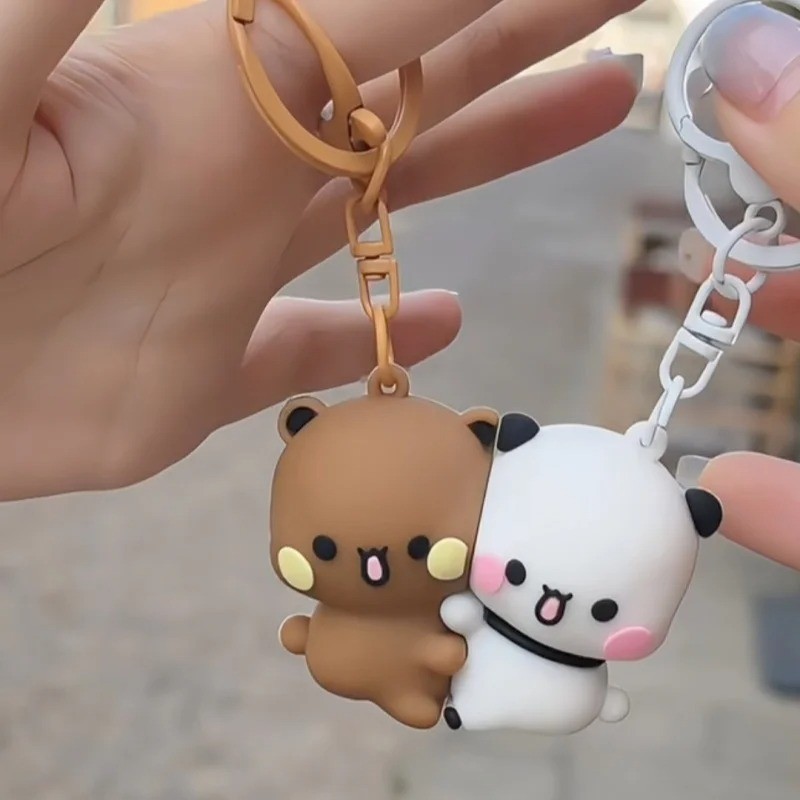 1 Par Bonito Panda Bubu E Yier Casal Chaveiro Magnético Dos Desenhos Animados Urso Saco Pingente Chaveiros Presentes Par